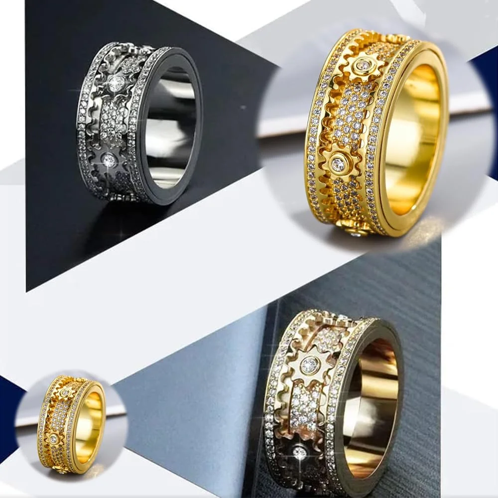 Stay focused and relieve stress with this elegant gear ring that doubles as a fidget spinner, perfect for the fashion-conscious.